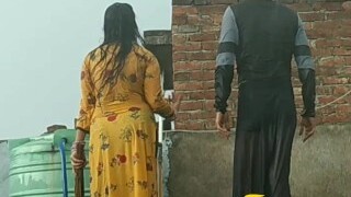 Indian Desi Bhabhi Outside Bathing dressed in see through nighty and flashing neighbor