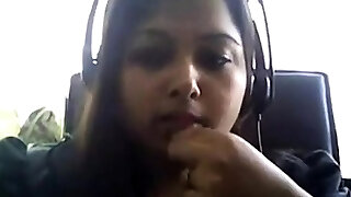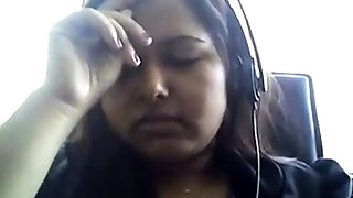 Bored Desi chubby on webcam plays with her boobie