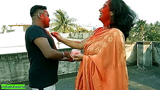 18yrs Tamil boy pummeling two splendid milf bhabhis together at Holi festival