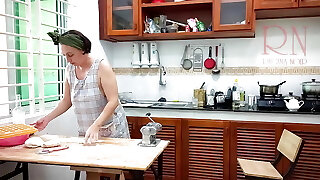 Ravioli Time! Naked Cooking. Regina Noir, a nudist cook at nudist motel resort. Nude maid. Naked housewife. Scene 1