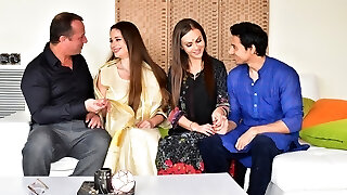 Man enjoys threesome ass fucking sex with sizzling Desi bhabhi and wife