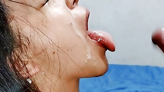 My horny stepsister wants me to suck her cock-squeezing pussy.
