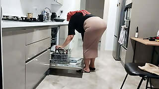 MILF stepmom enjoys making breakfast and fucking her fat knob stepson.