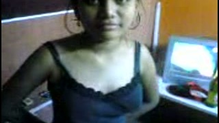 Kinky dark skinned ordinary looking Hindu brunette demonstrates her titties