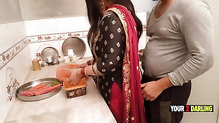 Punjabi Stepmother fucking in the kitchen when she make dinner for son