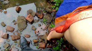 Indian aunty pissing outdoor