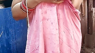 Anita yadav bathing outside with beautiful boobs